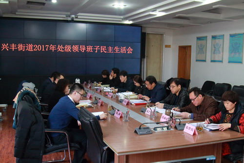 2018年2月8日上午,按照区委统一部署,兴丰街道召开了2017年度领导班子民主生活会。区委社会工委委员、区社会办副主任李洋、区委社会工委办公室主任卢鑫、区纪检委第二纪检监察室干部张卿、区委组织部培训科干部李志龙参加会议。 会上,街道工委书记石春明同志代表班子做对照检查,8名班子成员逐一开展批评与自我批评,大家对照六个方面内容深刻剖析了自身在思想、工作、生活、作风、纪律等方面存在的突出问题,并提出了切实可行的整改措施及努力方向,达到了坦诚相见、增进团结、凝聚力量的目的。 最后,石书记也代表街道领导班子作出表态发言。(组织部)