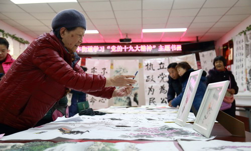 展出的作品主题鲜明,形式多样、构思巧妙,无论是书法还是绘画,创作者皆以丰富的视觉审美、独特的艺术语言、多变的创作形式和充满激情的书画创作,用真挚丰富的情感讴歌党的十九大,用饱蘸深情的笔墨描绘出兴丰街道学习宣传党的十九大精神的最美篇章。(组织部)