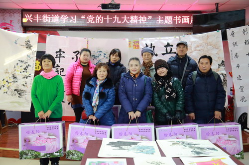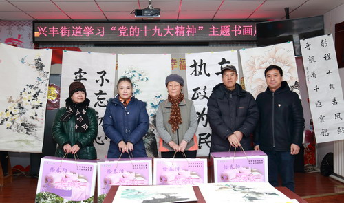 | 1月26日上午,由兴丰街道工委举办的学习“党的十九大精神”主题书画展圆满落幕,并在黄村西里社区举行了颁奖仪式。街道组织部部长隗合营、党群办主任宋思均应邀出席活动,并为获奖者颁奖。