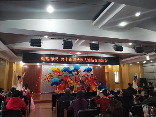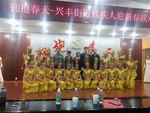 在2018年新春佳节即将到来之际,1月31日下午,兴丰街道残联特聘请了北京“心灵之声”残疾人艺术团,为辖区残疾人举办了“拥抱春天”—兴丰街道残联迎新春联欢会。 联欢会上,我街道温馨家园工作人员和服务对象共同表演了一首《国家》手语舞蹈,展现了他们的风采。悠扬的歌曲、优美的舞蹈,精彩的变脸,一曲铿锵有力的《水鼓舞》将联欢会推向高潮。最后,以经典舞蹈《千手观音》为大家送去了新年的祝福,祝福大家在新的一年里,工作顺利、身体健康!