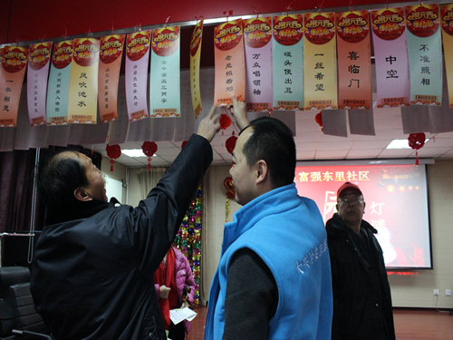 为活跃社区文化,营造和谐社区气氛,2月28日,富强东里社区在居委会三楼活动室开展了“闹元宵灯谜会”庆祝元宵佳节活动。本次灯谜内容涉及广泛,有歇后语接龙、民俗字谜、经典成语、打油诗等类别,里面既有通俗易懂的趣味猜题,也有较为复杂的抽象谜语。猜灯谜活动既具娱乐性,又具知识性。灯谜会的开展增进了社区居民之间的交流,让居民在欢乐祥和的氛围中感受传统文化。(富强东里社区)