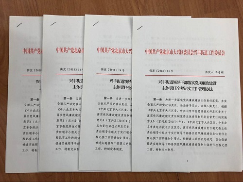 《兴丰街道领导干部落实党风廉政建设主体责任全程记实工作管理办法》的落实,让主体责任工作有痕迹、落实有力度、督查有依据,时刻督促责任主体把主体责任扛起来、落下去,层层压实。
